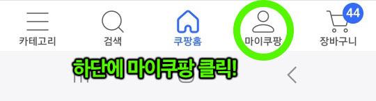 ①쿠팡앱 하단에 마이쿠팡을 클릭합니다.