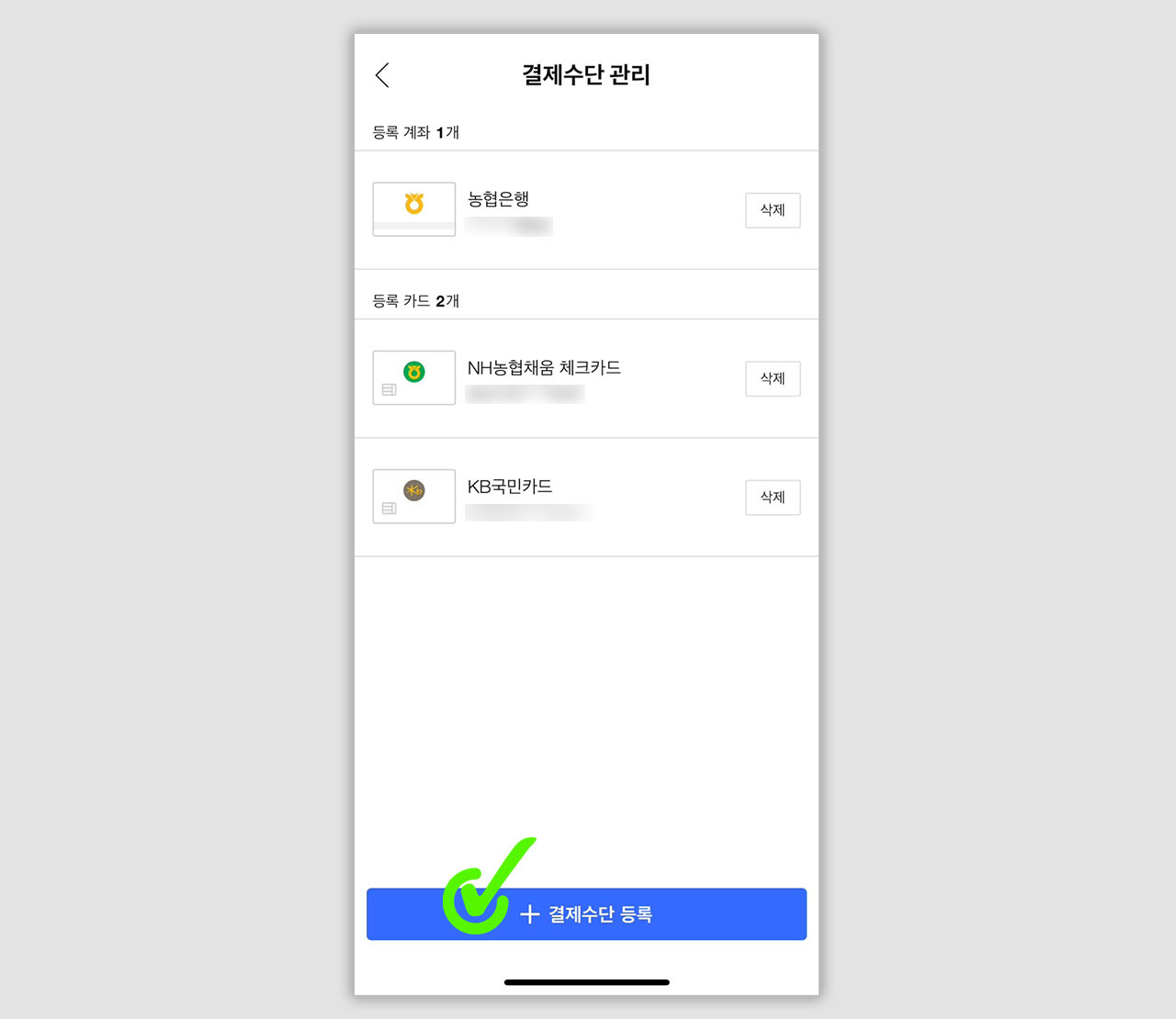 4. 준비된 할인카드 기본 결제 수단으로 등록하기