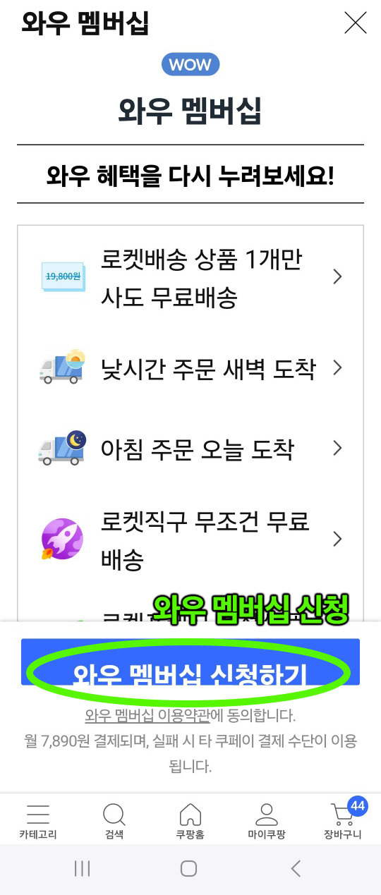 카드 할인을 받기 위해서는 와우 멤버를 가입 해야 합니다.