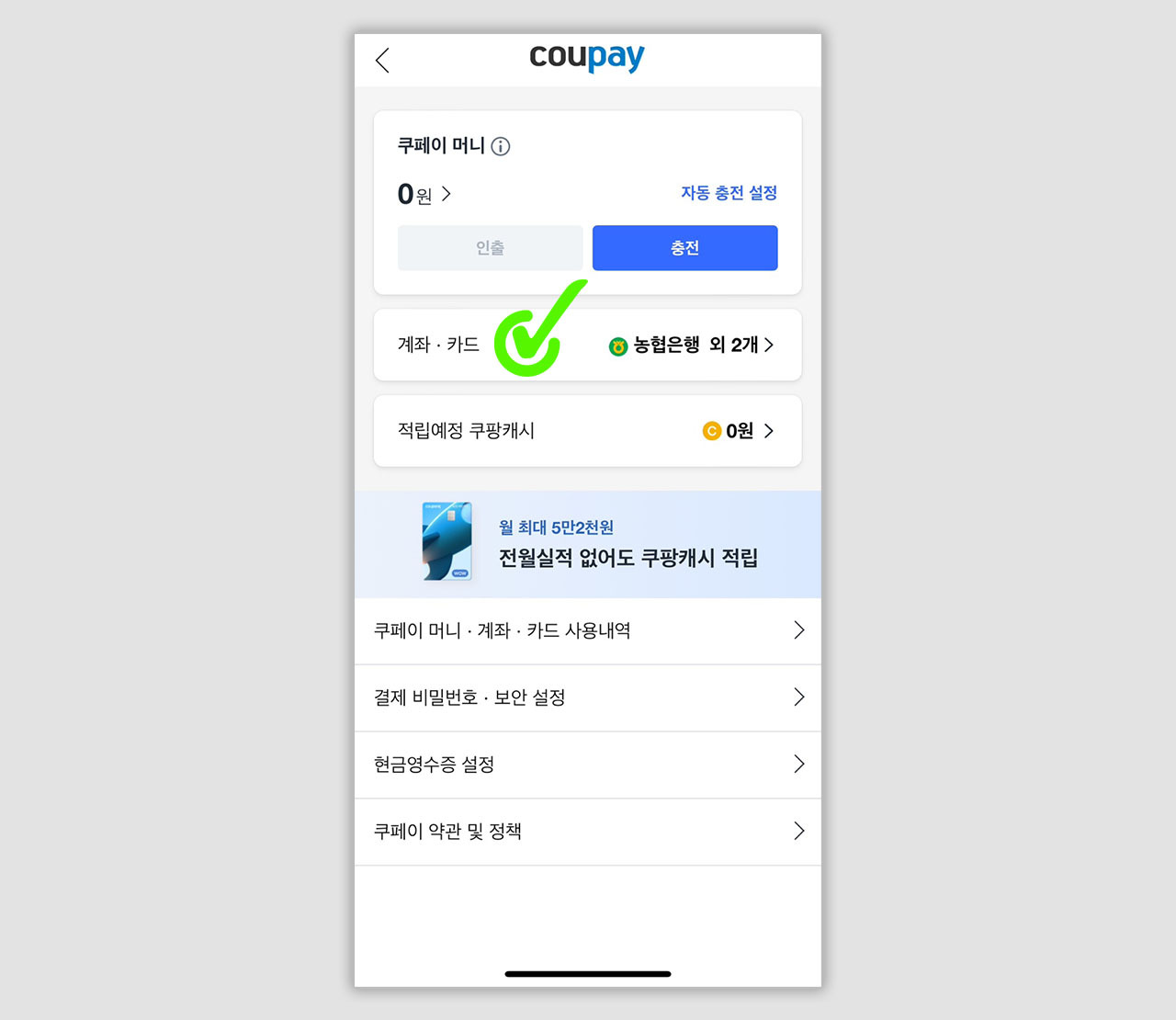 여기서 주의사항은 쿠팡계정 명의와 같은 카드만 사용 가능힙니다.