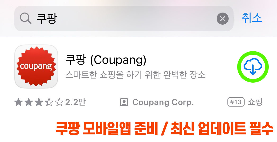 1. 쿠팡 모바일 앱 준비 / 최신 버전 업데이트 해놓기