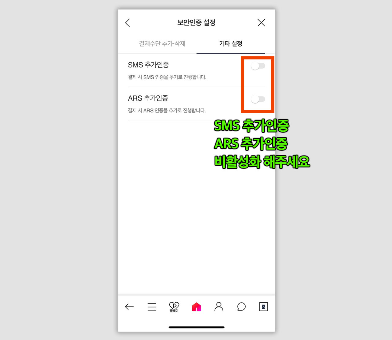 결제할 때 SMS 추가인증과 ARS 추가 인증이 추가로 나오는 것을 방지 하기 위해