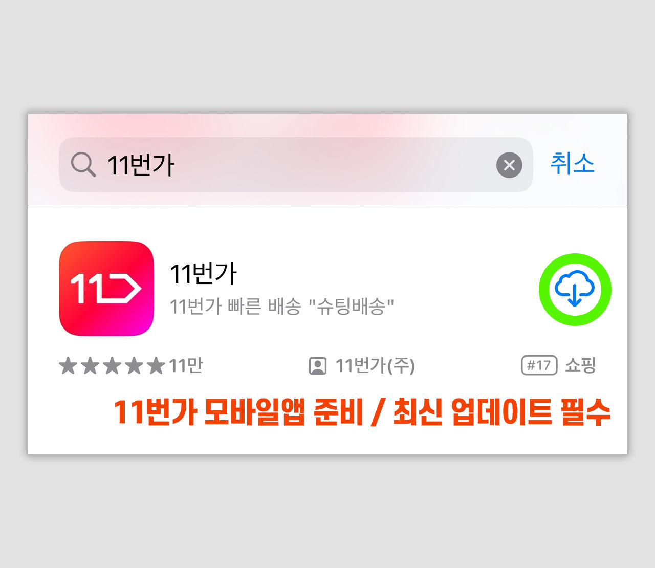 앱스토어에서 11번가 앱을 다운 받아주세요